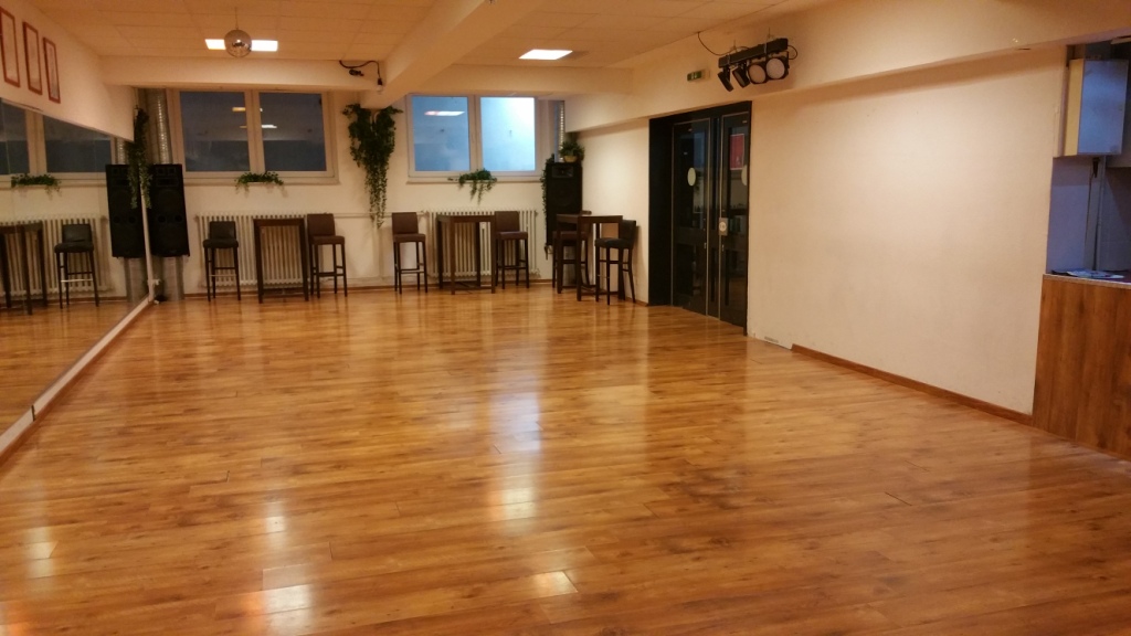 Flur links geht es in den Tanzsaal rechts ins Untergeschoss zu den Umkleiden |