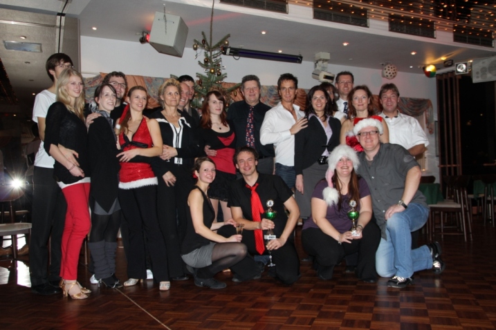 Nick und Katharina (links im Bild mit den Trainern Stephan und Maike) konnten an diesem Abend Ihren bisher größten Erfolg feiern. Mit 4 von 7 möglichen Einsen holten Sie in der Endwertung den eindeutigen ersten Platz. Sie sind somit die Gewinner der Deutschen Meisterschaft 2012 in der Schülerklasse. Lars Heinrich und Steffi Beier erkämpften sich in einem sehr starken A-Klasse-Feld den 8. Platz und somit den Anschlußplatz zur Endrunde. |